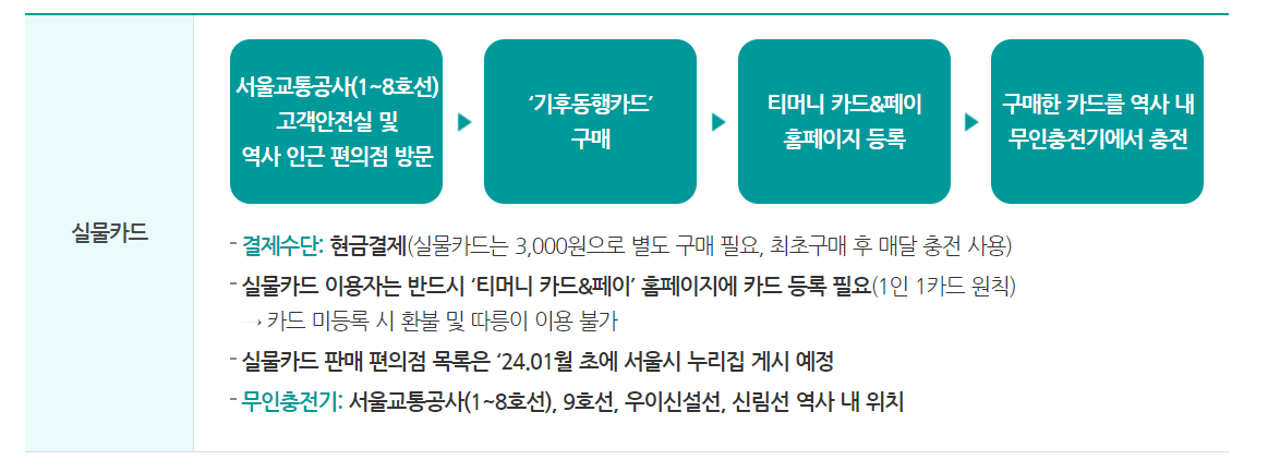 구매한 실물 카드는 티머니 카드&페이 홈페이지에서 등록해야 정상적으로 이용 가능합니다.