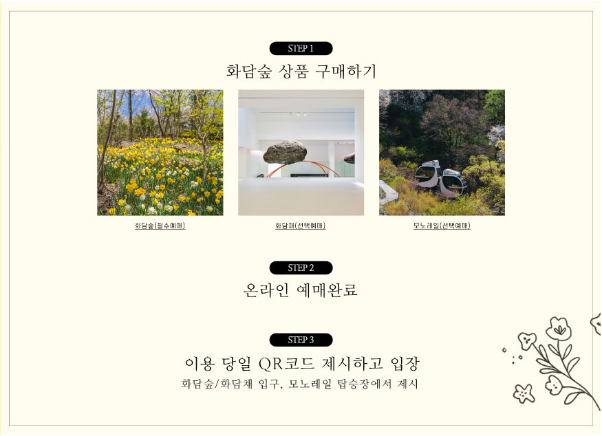 - 입장권, 화담채 입장권, 모노레일, 프로그램 상품 확인 후 선택