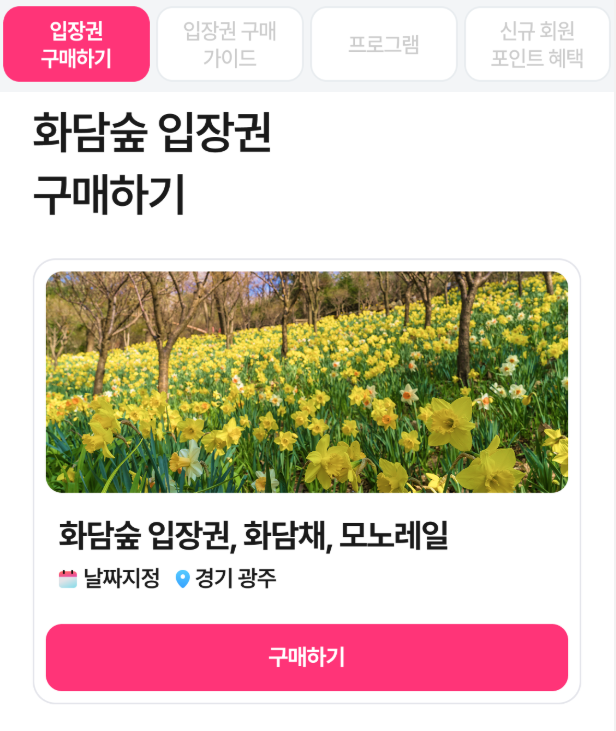 - 화담숲 공식 홈페이지 또는 야놀자 앱에서 예매 링크 클릭