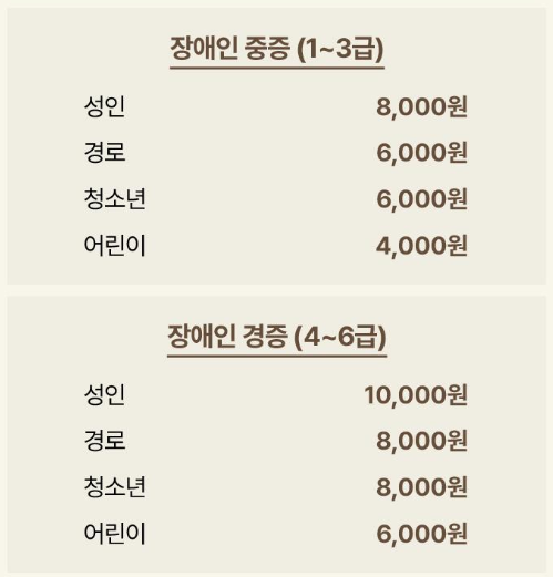 - 이용 요금: 별도 요금 부과 (입장권과 별도)